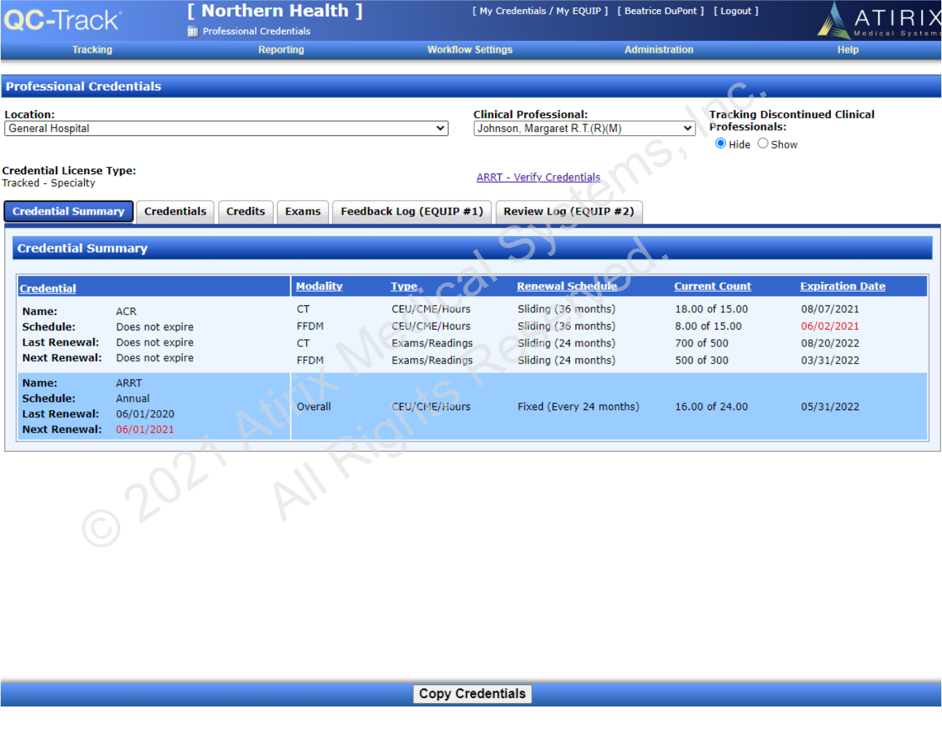 Credentials are licensed by the number of clinical professionals being tracked. Professionals being tracked are not required to be QC-Track users.